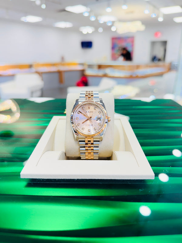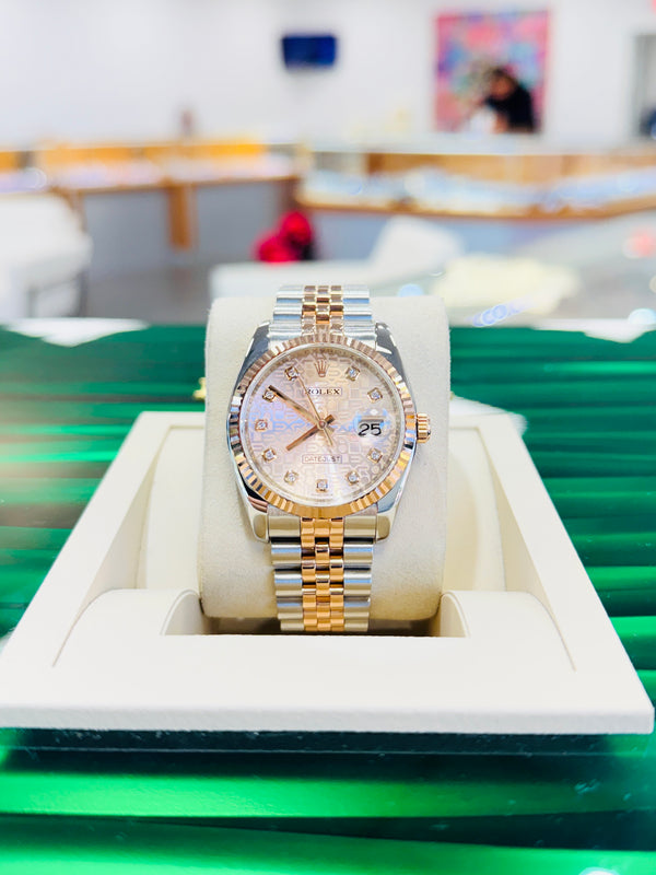 Rolex Datejust 36 116231 Factory Pink Diamond Jubilee Dial EverRose and Steel Jubilee Band Box and Papers PreOwned |