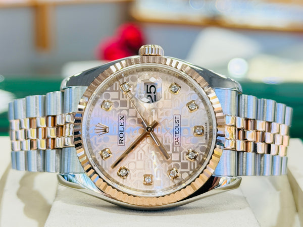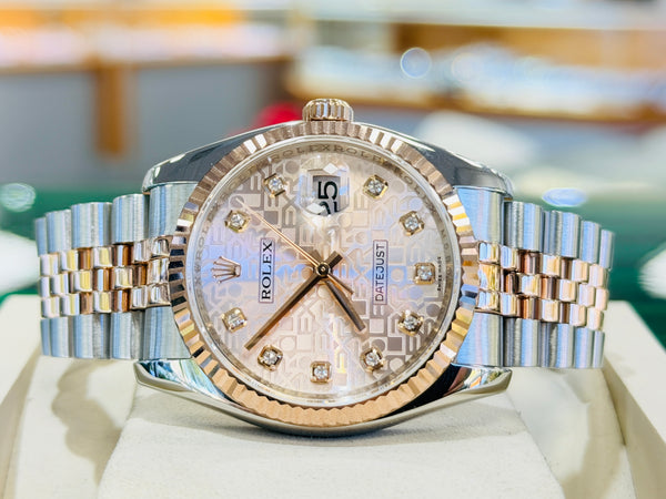 Rolex Datejust 36 116231 Factory Pink Diamond Jubilee Dial EverRose and Steel Jubilee Band Box and Papers PreOwned