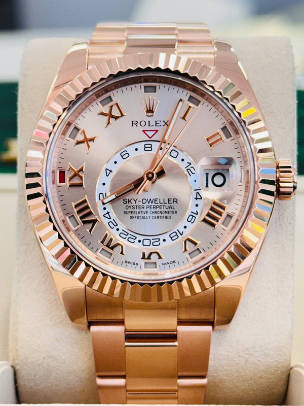 Rolex Sky-Dweller 32693518K Rose Gold Sundust DialBox and Papers PreOwned |