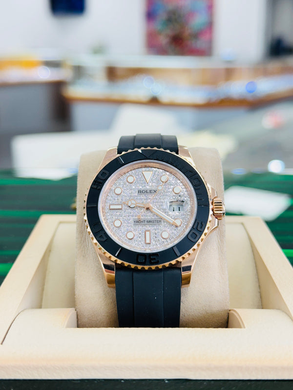 Rolex Yacht-Master 40 126655 18kt Rose Gold Custom Diamond Pave Dial Oyster Flex Box and Papers PreOwned