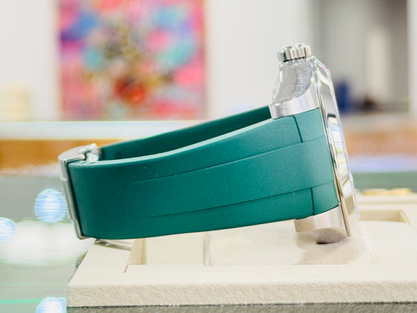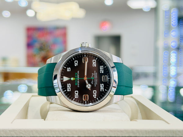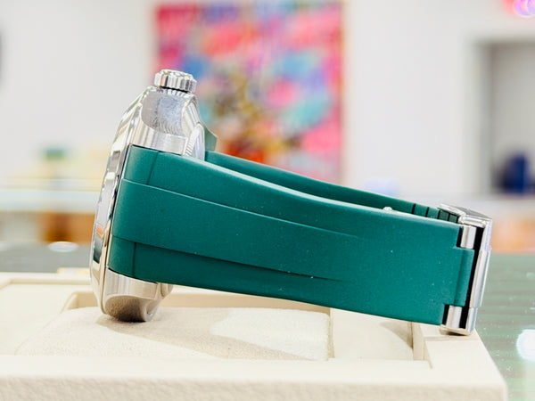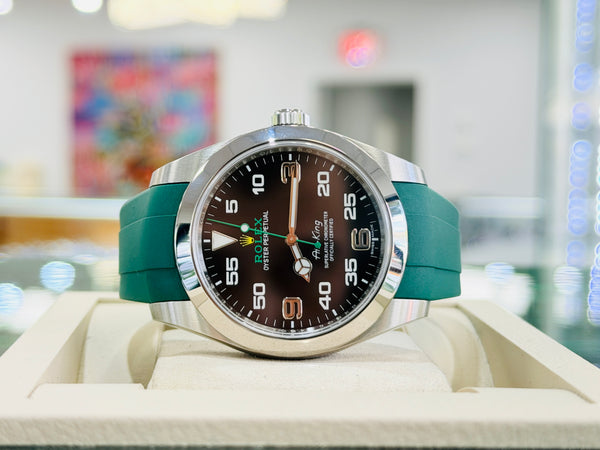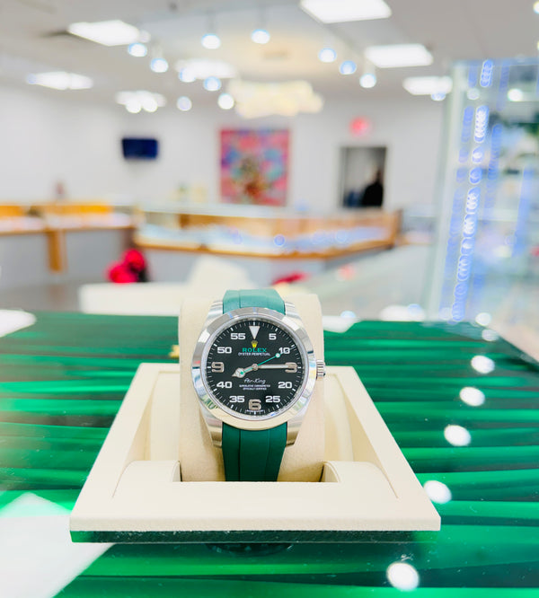 Rolex Air King 40 116900Arabic Dial Stainless Steel Oyster PreOwnedCustom Rubber B Band Green |