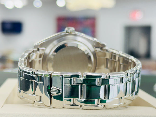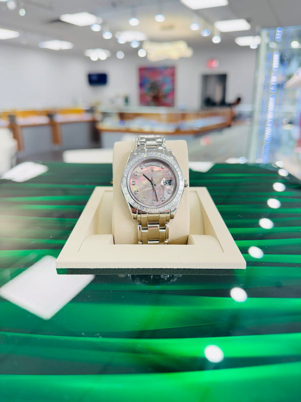Rolex Day-Date 18956 39 Masterpiece with Factory baguette bezel Factory Diamond Black Tahitian Dial Platinum bracelet PreOwned
